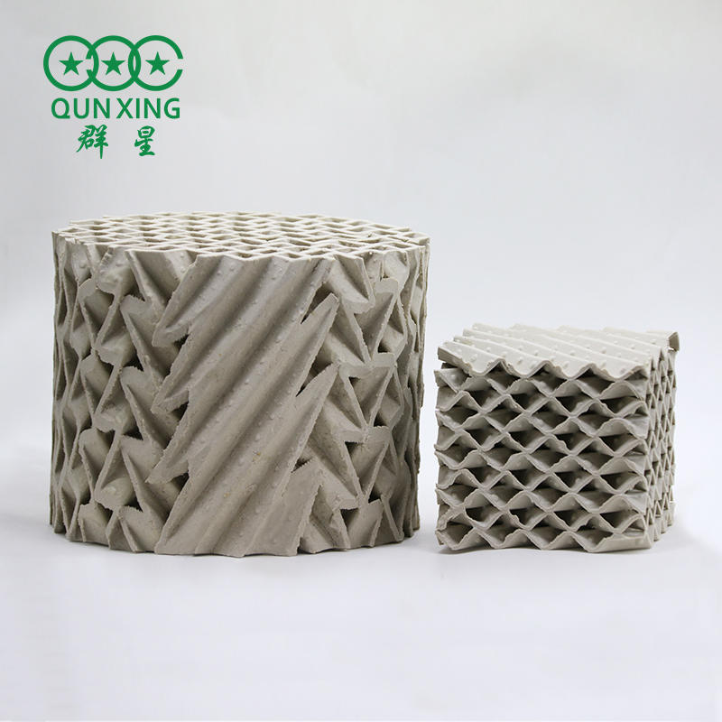 陶瓷波紋填料是一種新型規(guī)整填料,它是由許多具有相同幾何形狀的填料單元體組成。由于陶瓷的結構,具有良好的親水性能,其表面可形成極薄的液膜的湍動及氣流的傾斜曲折通道能促進氣流但又不阻擋氣流使陶瓷填料能與金屬填料相匹敵,而其耐腐蝕、耐高溫性能金屬填料卻無法相比。表面結構有良好的濕潤性能,能使液體加快流動、使填料滯液量降至低。從而降低了過熱、聚合和結焦的機會。